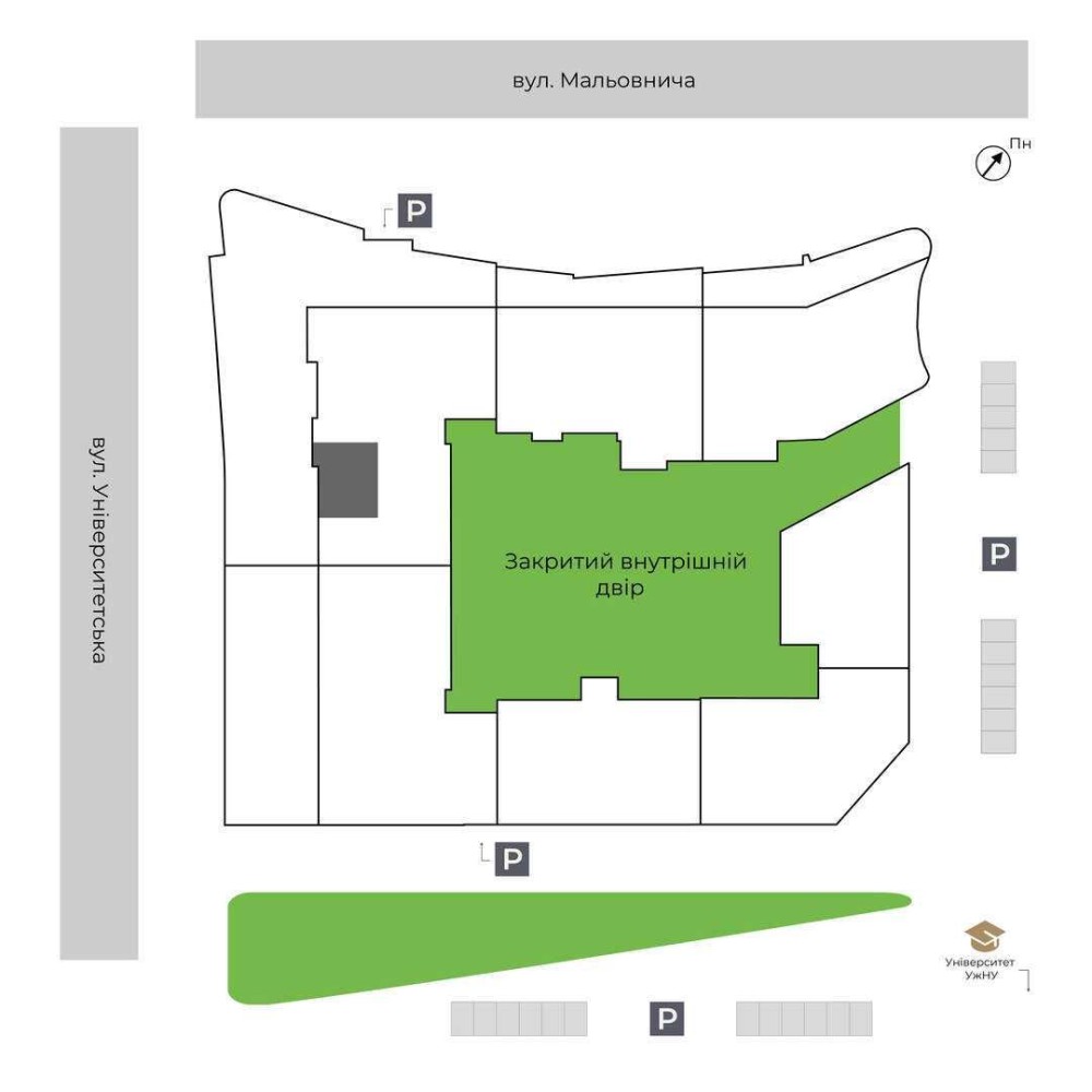 • Локація: найвища точка Ужгорода, престижний район