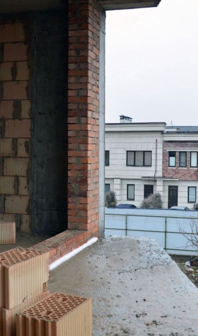 - Стіни з червоної цегли товщиною 35 см + 15 см утеплення мінеральною ватою