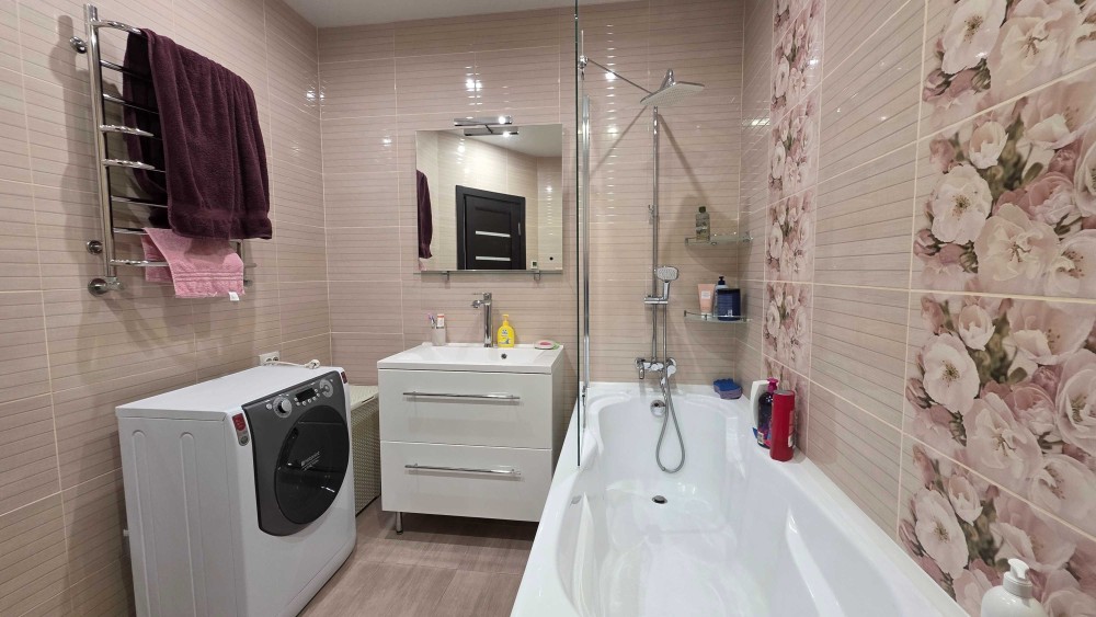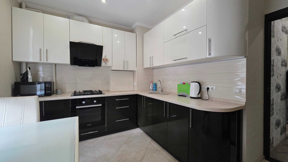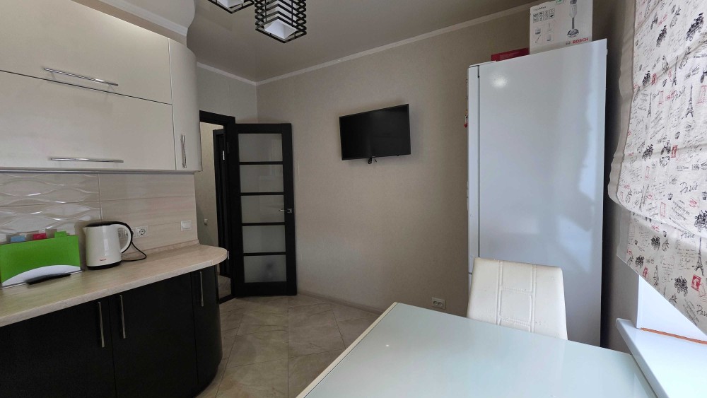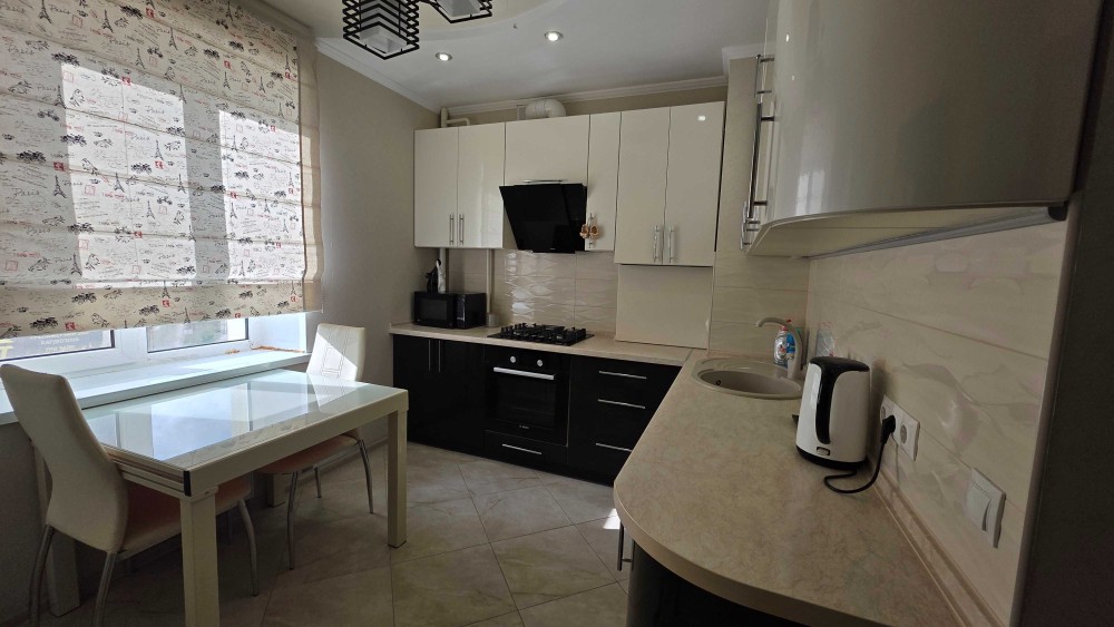Квартира повністю укомплектована всіма необхідними меблями, тепла підлога на кухні та в ванній кімнаті, автономне опалення, кондиціонер.