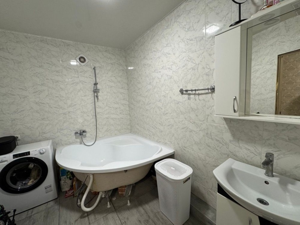 Роздільний санвузол , велика кутова ванна.