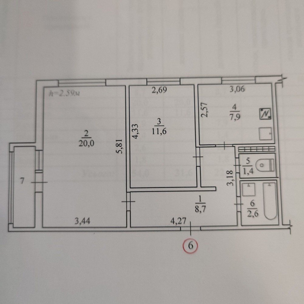 Загальна площа: 54,0 м²