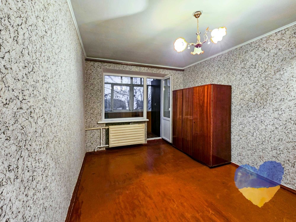 Розташована в середині теплого цегляного будинку. Загальна площа складає 46 м2! 2 просторі окремі кімнати – 17.1 та 13.2 м2. Також є приміщення для гардеробної чи кладової кімнати.