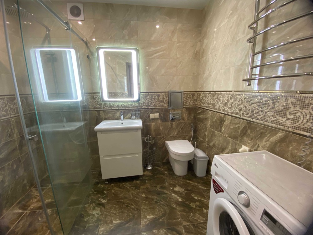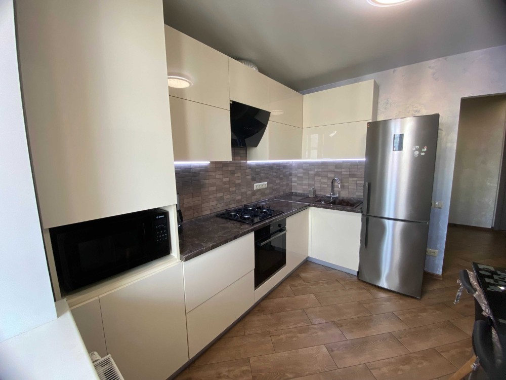 Квартира з авторським ремонтом, меблями та технікою. В квартирі індивідуальне газове опалення, 2-контурний газовий котел, тепла підлога; вбудована побутова техніка: варильна поверхня, духова шафа, посудомийна машина, холодильник; мікрохвильова піч, система фільтрації води, система проти затоплення “Нептун”, кондиціонер.