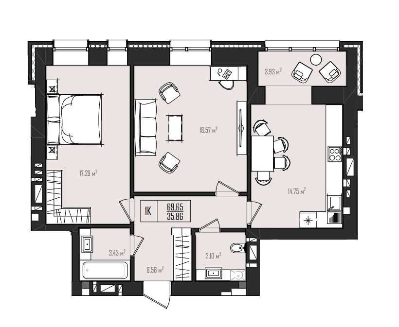 • Однокомнатная