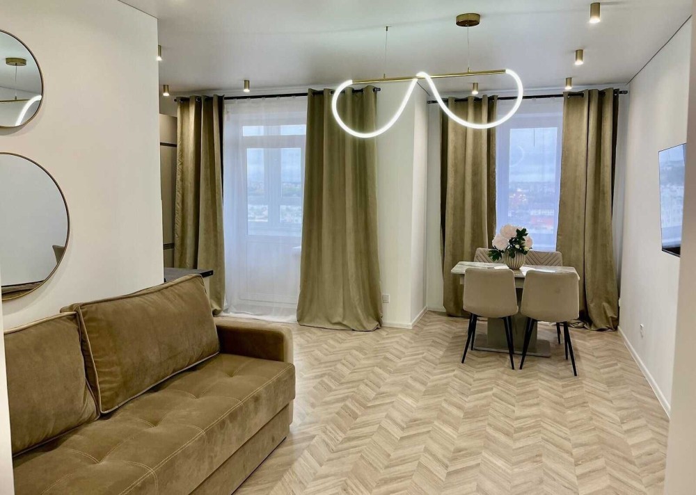 Пропонується стильна 2-кімнатна квартира з якісним дизайнерським ремонтом, укомплектована технікою та меблями.