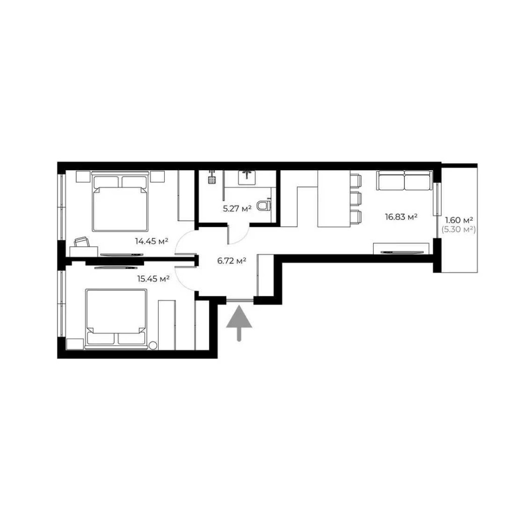 – Площа: 60.9 м²