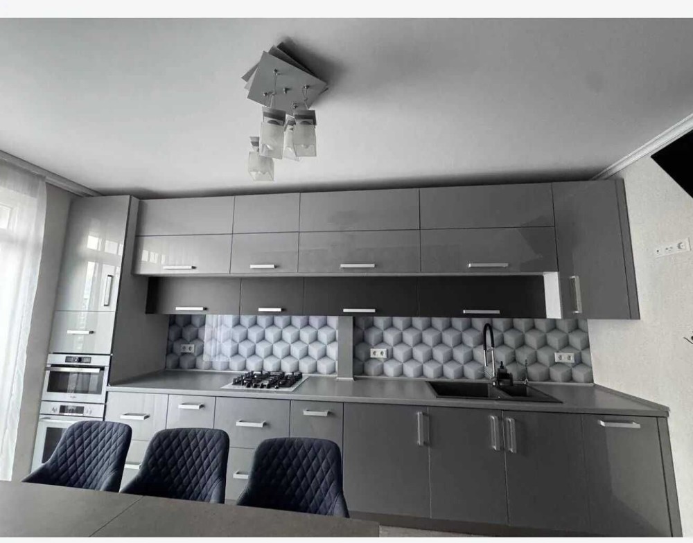 Якісні меблі з кухонною фурнітурою BLUM, вмонтована пральна машина, духова шафа, газова поверхня, мікрохвильова піч, холодильник, посудомийна машина, кондиціонер, обідній стіл зі стільцями. На кухні встановлений фільтр на питну воду.