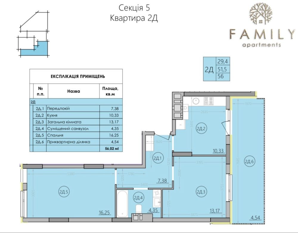 • Общая площадь 56 м2