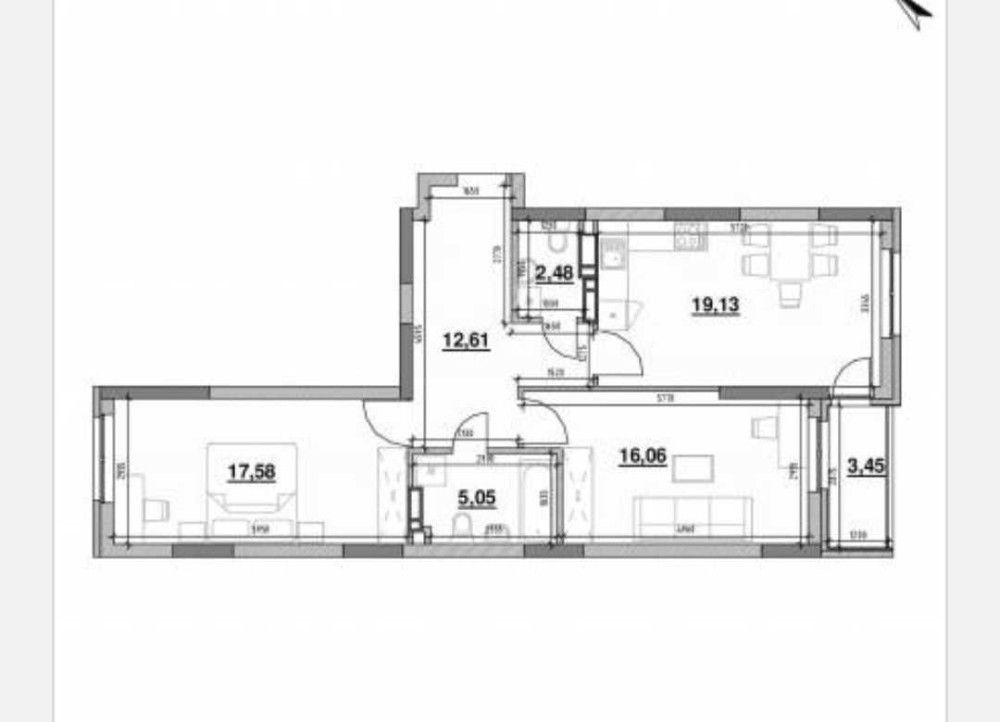 • Площадь кухни 19 м2