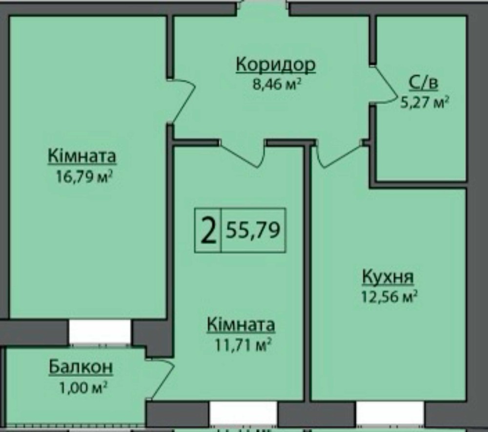 Площа - 55,79 м2
