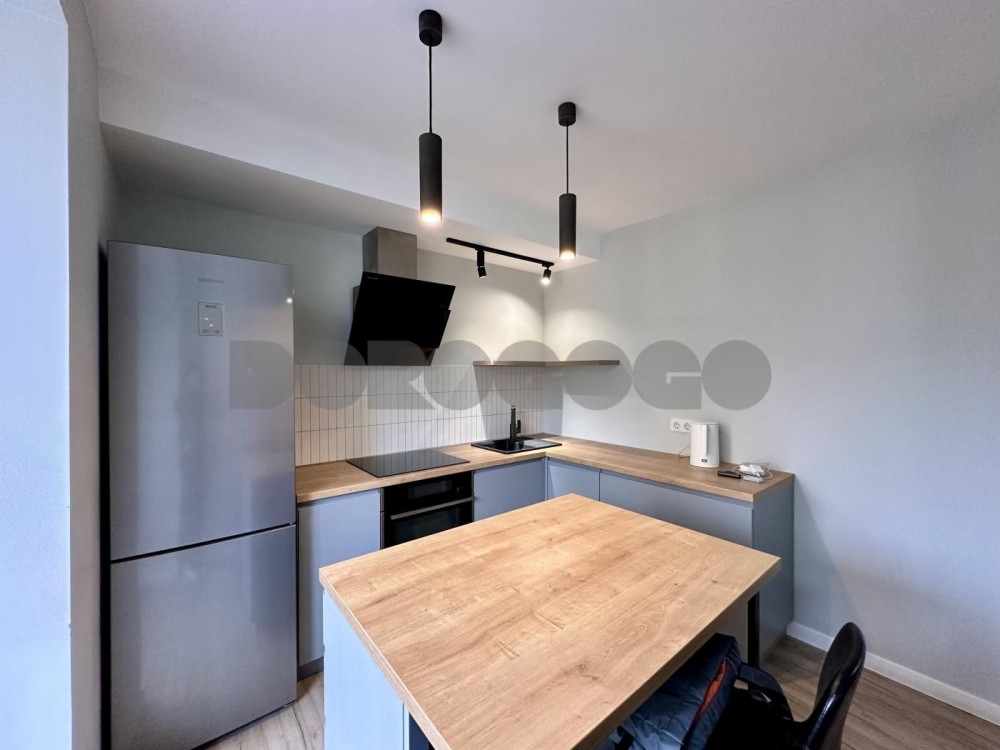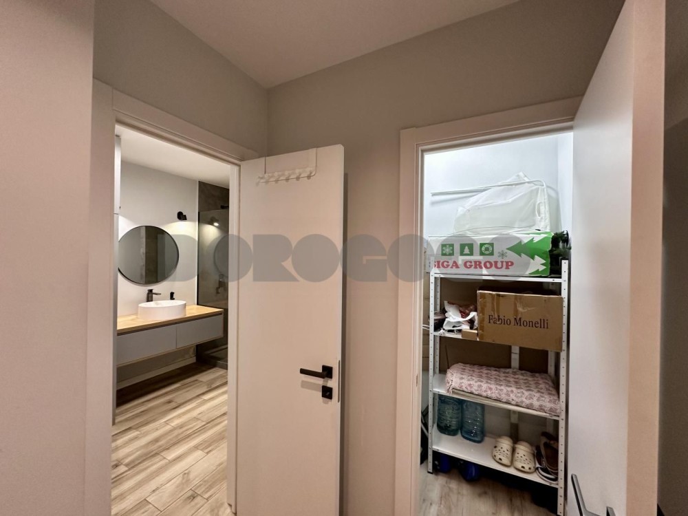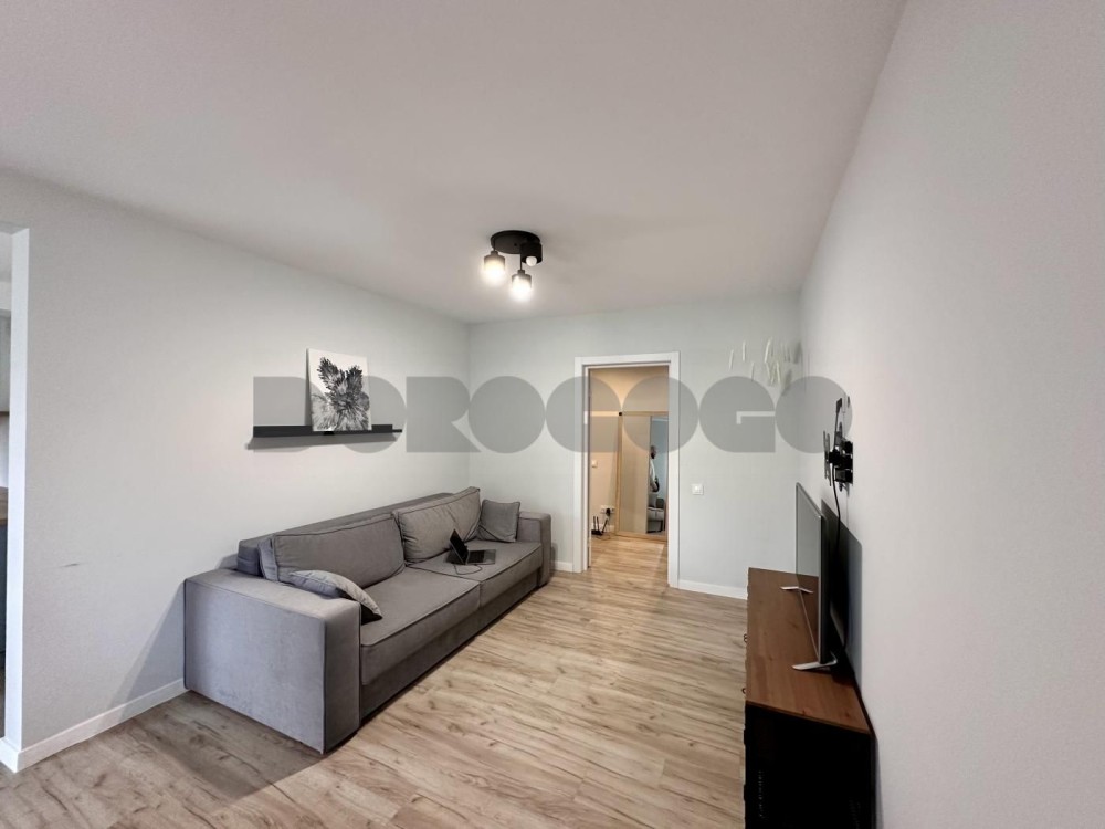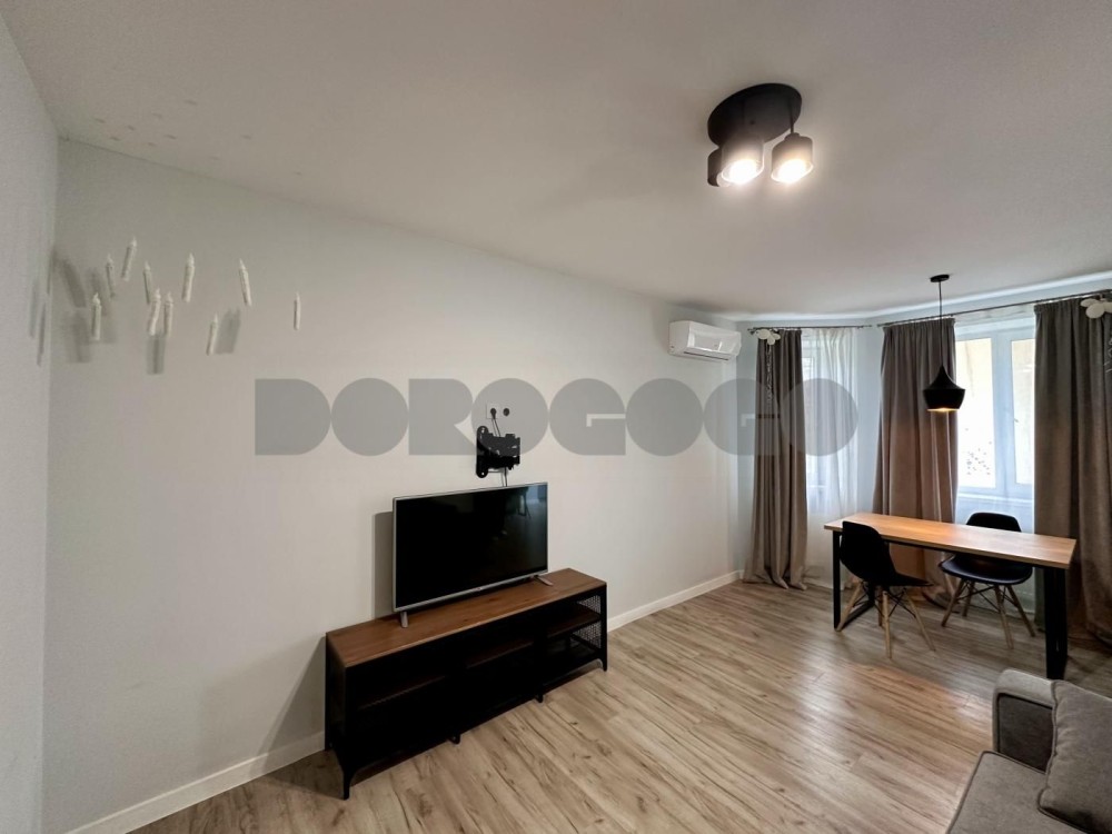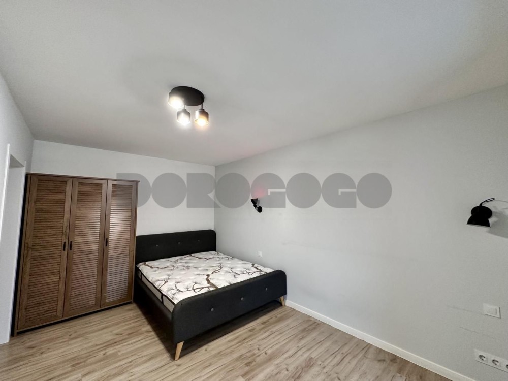 Планування: простора кухня-вітальня та окрема спальна кімната. За необхідності можна відокремити кухню від вітальні розсувними дверима. У квартирі також є невелика кімната-комора.