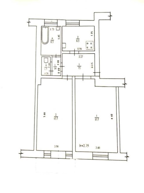кухня- 8,5 м2