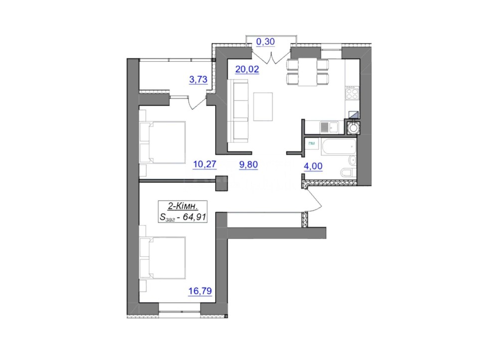 • Общая площадь 65 м2