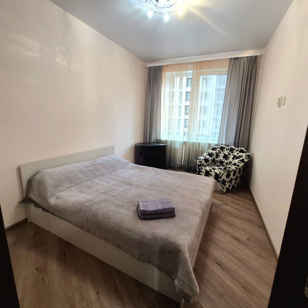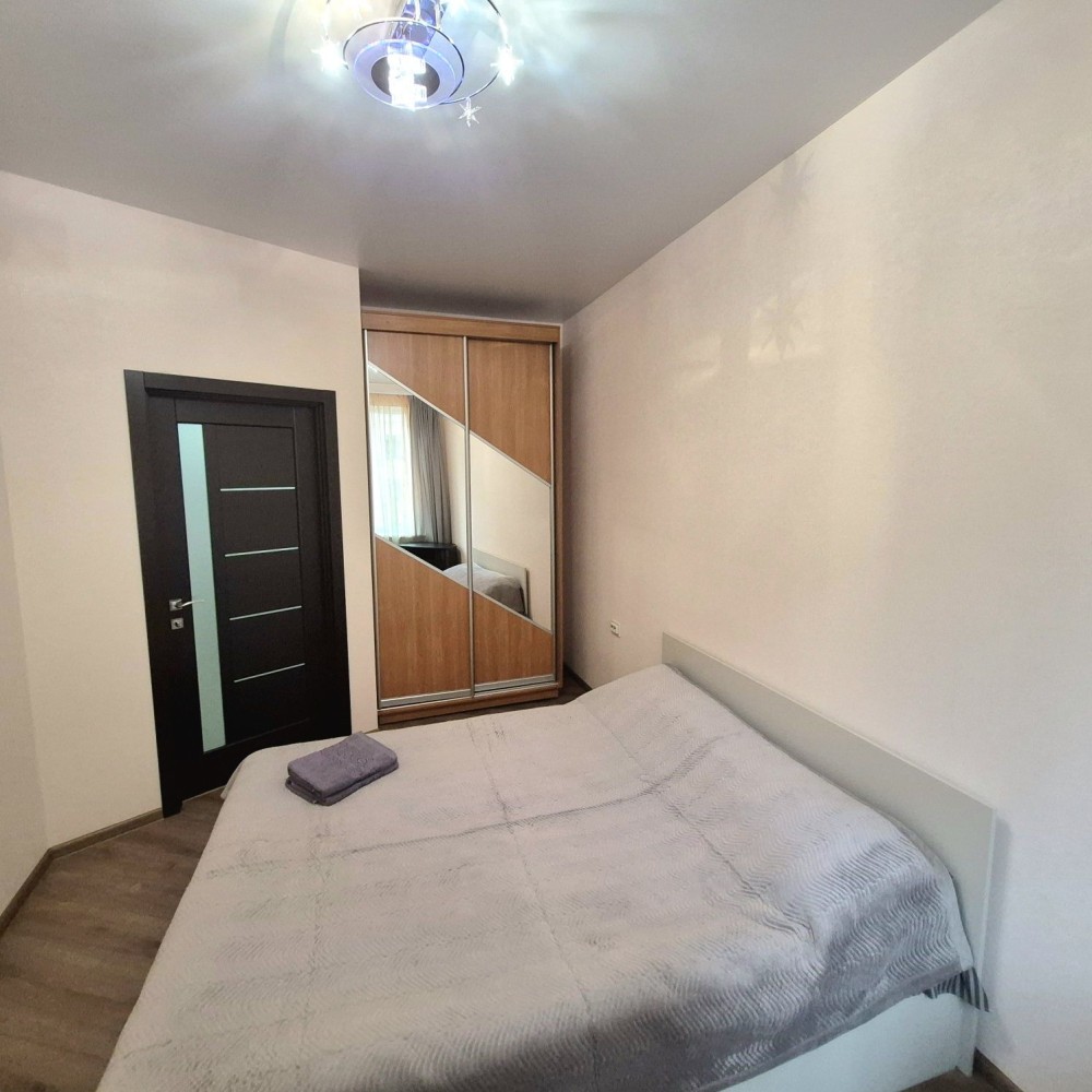Простая, но чистая и по-домашнему комфортная квартира со всей мебелью включая двухспальную кровать и диван. Возможно комфортное заселение для 3-х человек(пара плюс один). Чистая постель и полотенца, холодильник, вся посуда, горячая вода(новый бойлер), интернет wi-fi, телевизор(кабельное). Цена посуточно 450-600 гривен в сутки зависит от количества дней и человек. Командировочным выдааю документы.