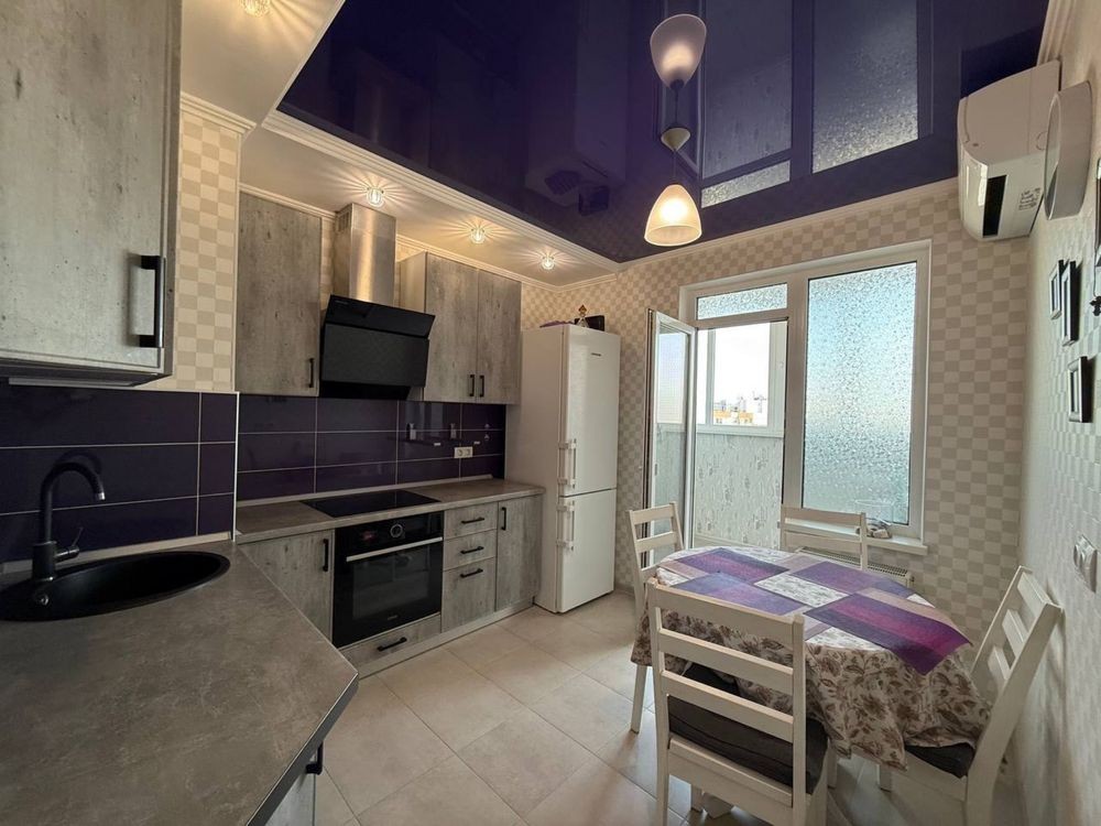 1к Бреуса/Рекордная. 16/17 эт. Общая площадь 48 м, перепланирована в 2х к . Кухня - гостиная 15 м. Сан узел совмещен. В квартире классический современный ремонт. Очень светлая, вид на частный сектор.