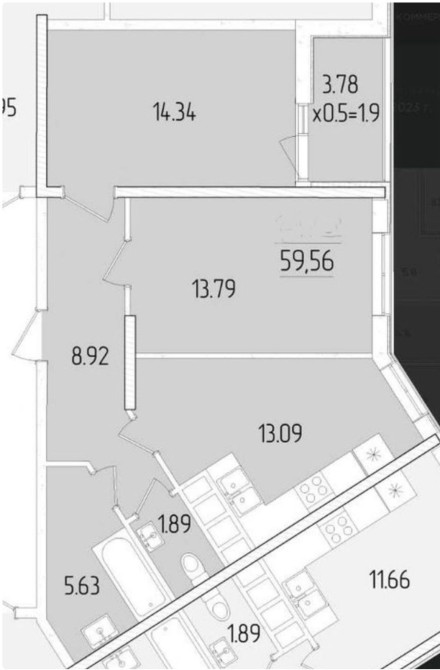 • Общая площадь 60 м2