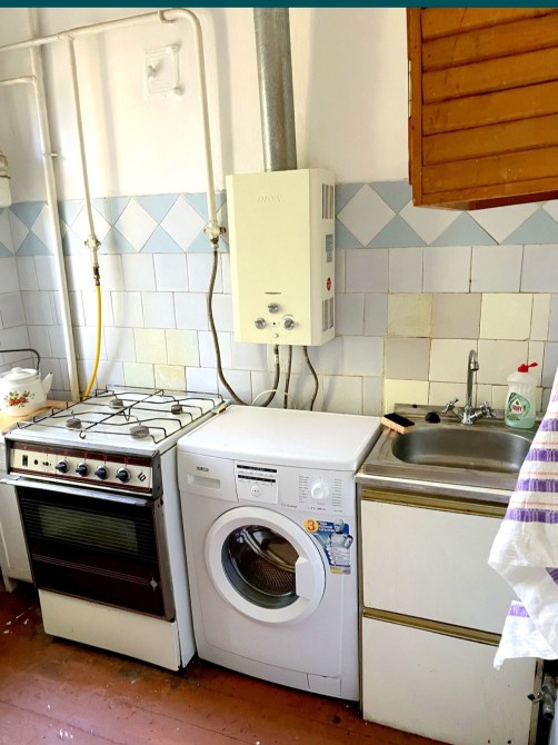 Также есть холодильник , стиральная машинка , электрочайник, посуда .