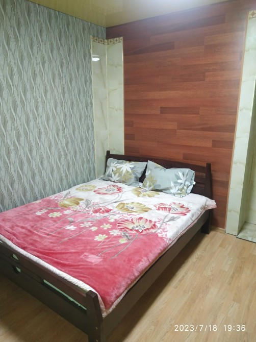 Простая, но чистая и по-домашнему комфортная квартира со всей мебелью включая двухспальную кровать и диван. Возможно комфортное заселение для 3-х человек(пара плюс один). Чистая постель и полотенца, холодильник, вся посуда, горячая вода(новый бойлер), интернет wi-fi, телевизор(кабельное). Цена посуточно 450-600 гривен в сутки зависит от количества дней и человек. Командировочным выдааю документы.