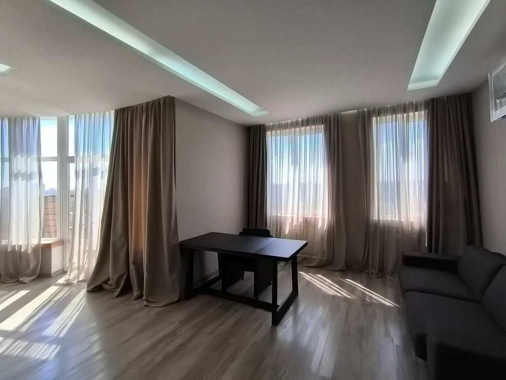 1к Бреуса/Рекордная. 16/17 эт. Общая площадь 48 м, перепланирована в 2х к . Кухня - гостиная 15 м. Сан узел совмещен. В квартире классический современный ремонт. Очень светлая, вид на частный сектор.