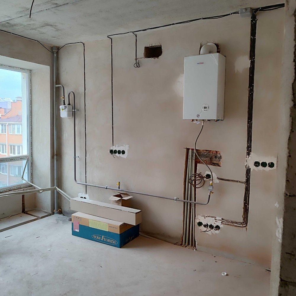 Квартира з максимальним наповненням: котел індивідуального газового опалення, штукатурка стін, чистова стяжка підлоги, розводка електрики з встановленням автоматів, розводка опалення, розводка сантехніки.