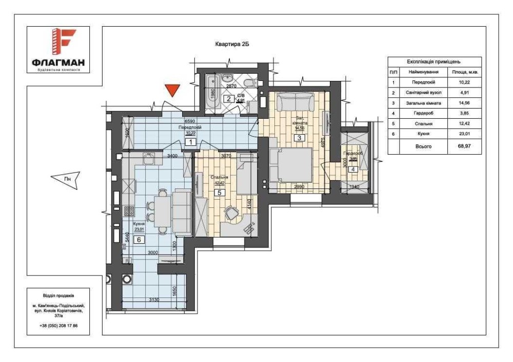 • Общая площадь 68.97 м2