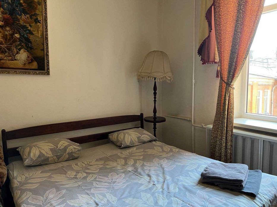 Простая, но чистая и по-домашнему комфортная квартира со всей мебелью включая двухспальную кровать и диван. Возможно комфортное заселение для 3-х человек(пара плюс один). Чистая постель и полотенца, холодильник, вся посуда, горячая вода(новый бойлер), интернет wi-fi, телевизор(кабельное). Цена посуточно 450-600 гривен в сутки зависит от количества дней и человек. Командировочным выдааю документы.