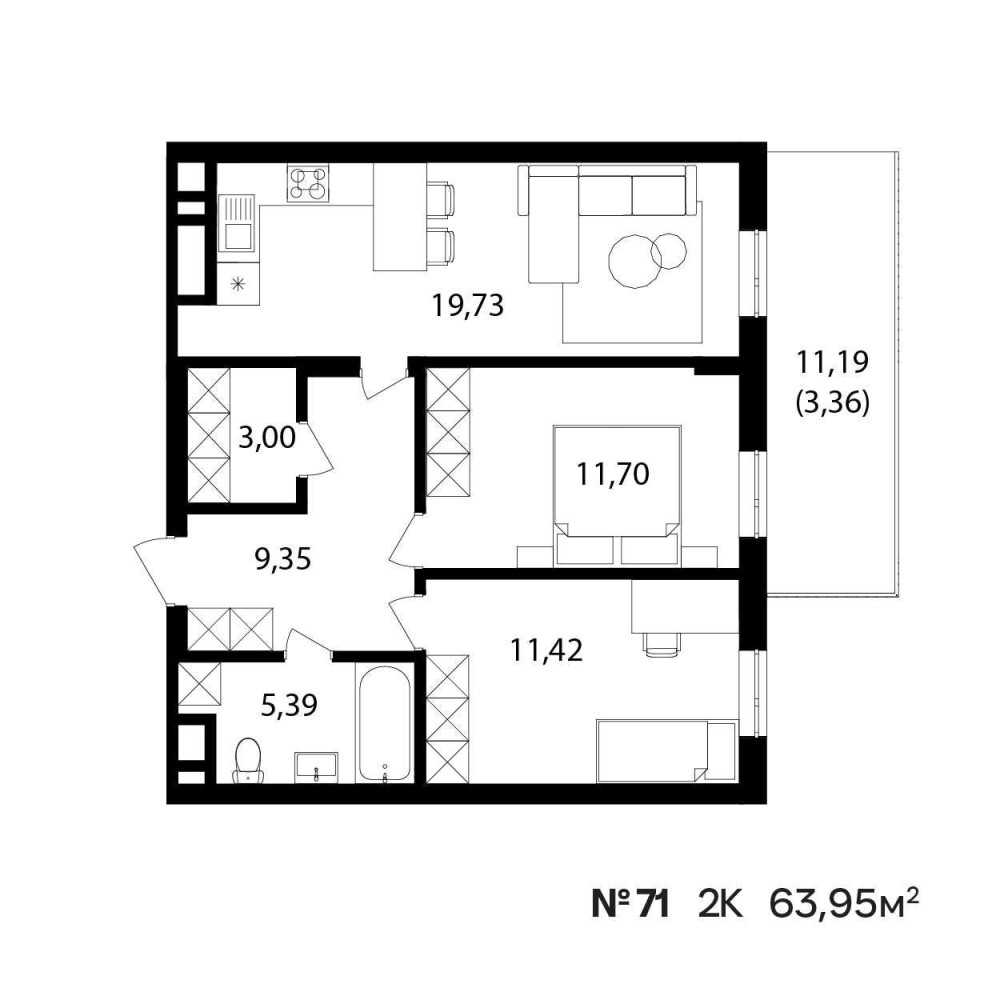 • Общая площадь 63.95 м2