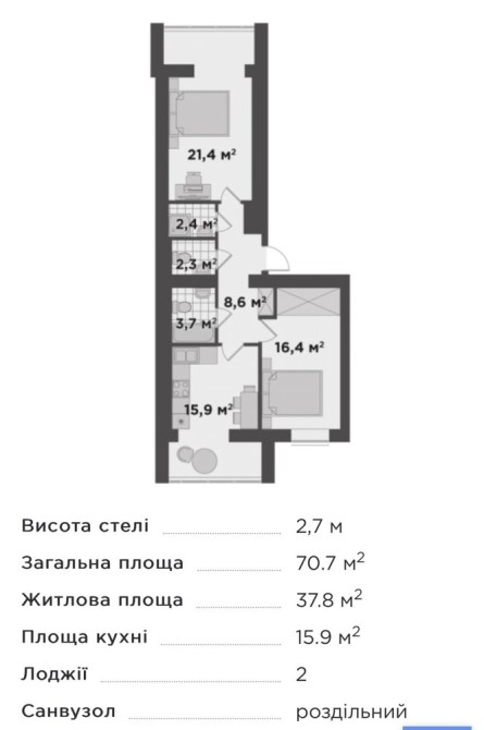 Площа — 73,7 м²