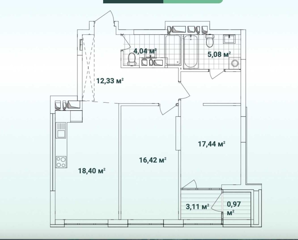 • Площадь кухни 18.4 м2