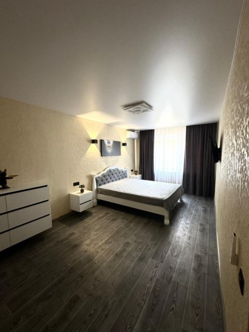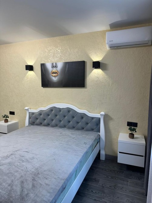 Меблі: Вбудована кухня з підсвіткою, велика шафа-гардероб, зручне двоспальне ліжко, диван.