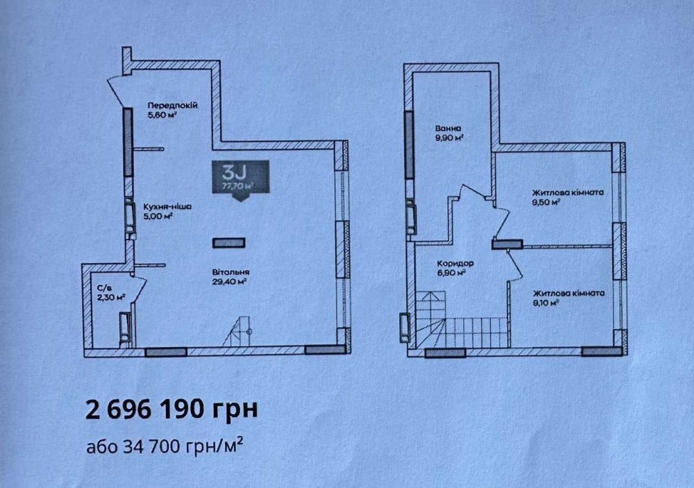 Простора дворівнева 2-кімнатна квартира у ЖК “Сіті Парк”