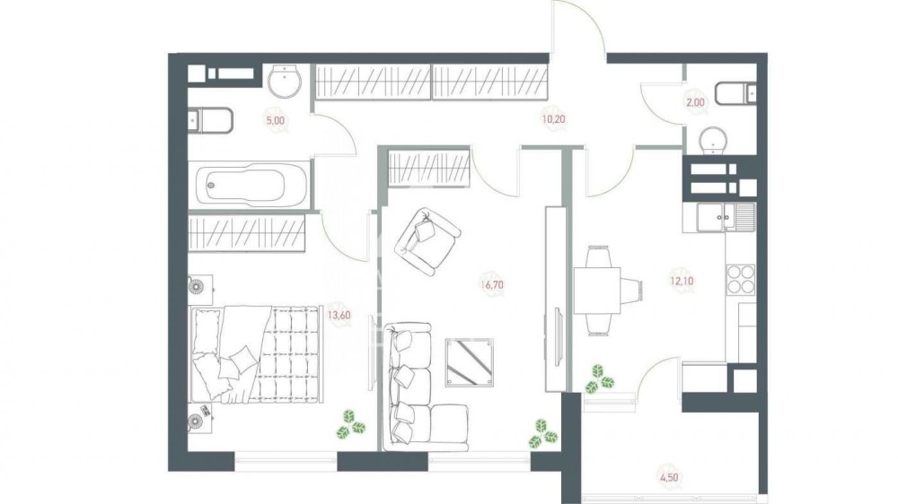 • Трехкомнатная