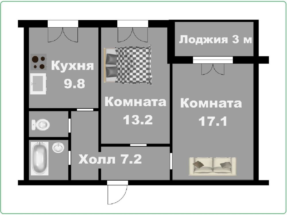 • Двухкомнатная