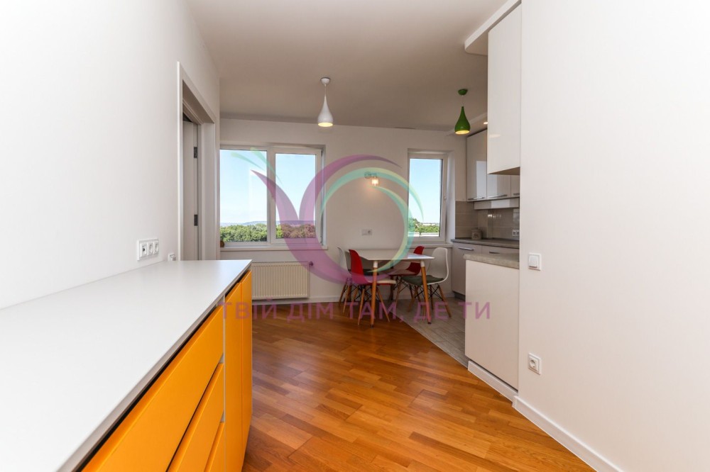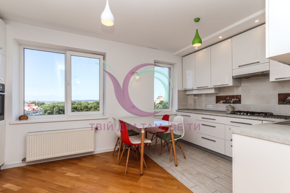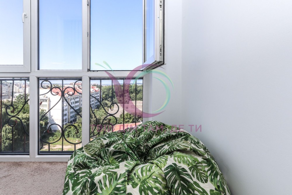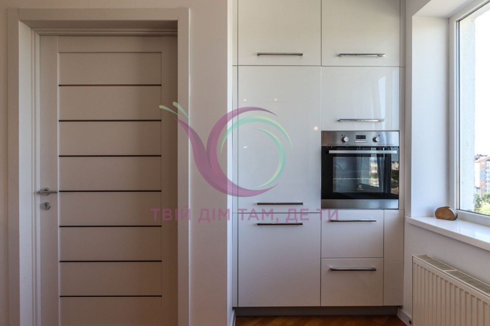Квартира знаходиться на 9-му поверсі сучасного будинку, завдяки чому з вікон відкриваються неймовірні краєвиди на місто. Простір продуманий до деталей, інтер’єр виконаний у спокійних гармонійних тонах, що створюють атмосферу тепла та затишку.