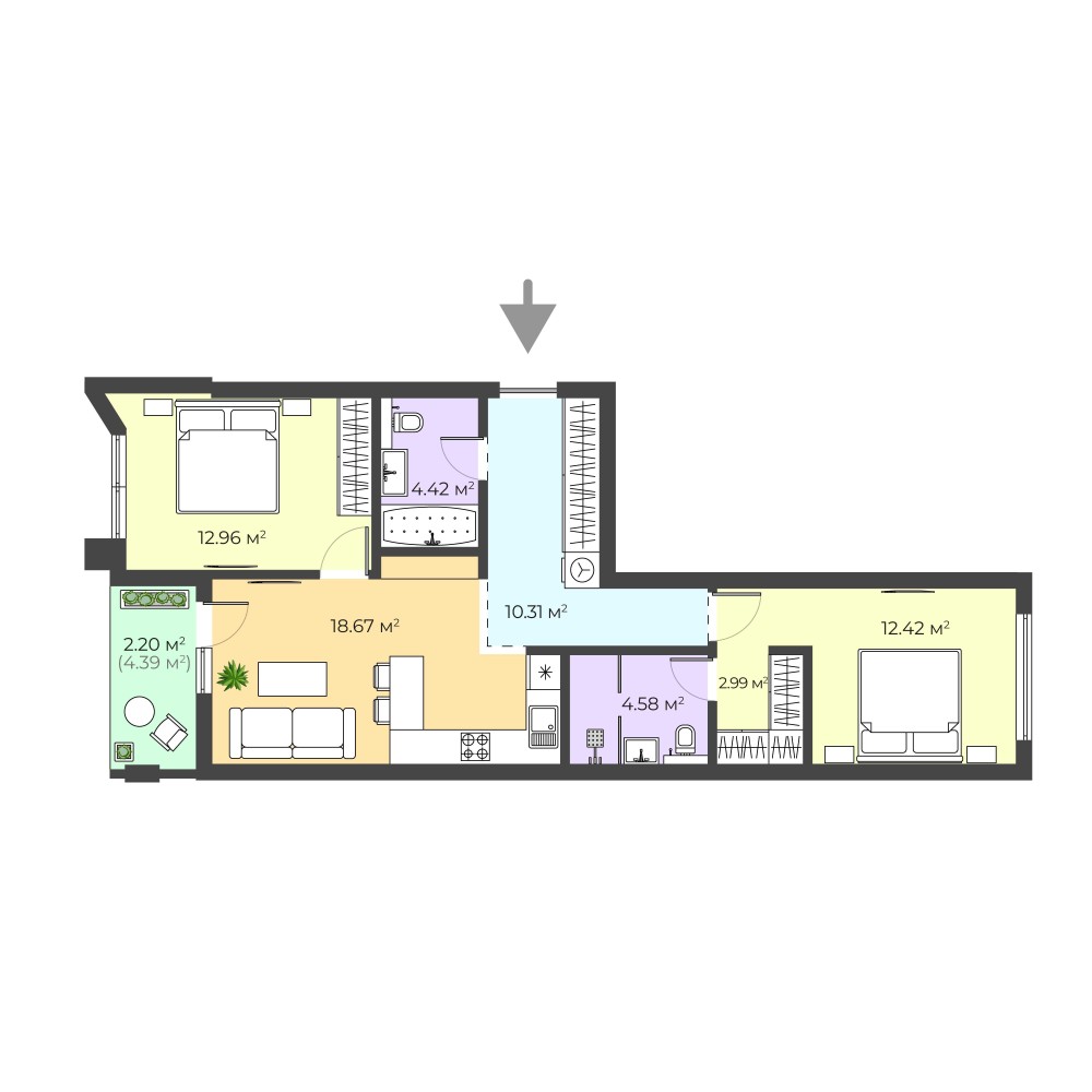 • Общая площадь 68.6 м2