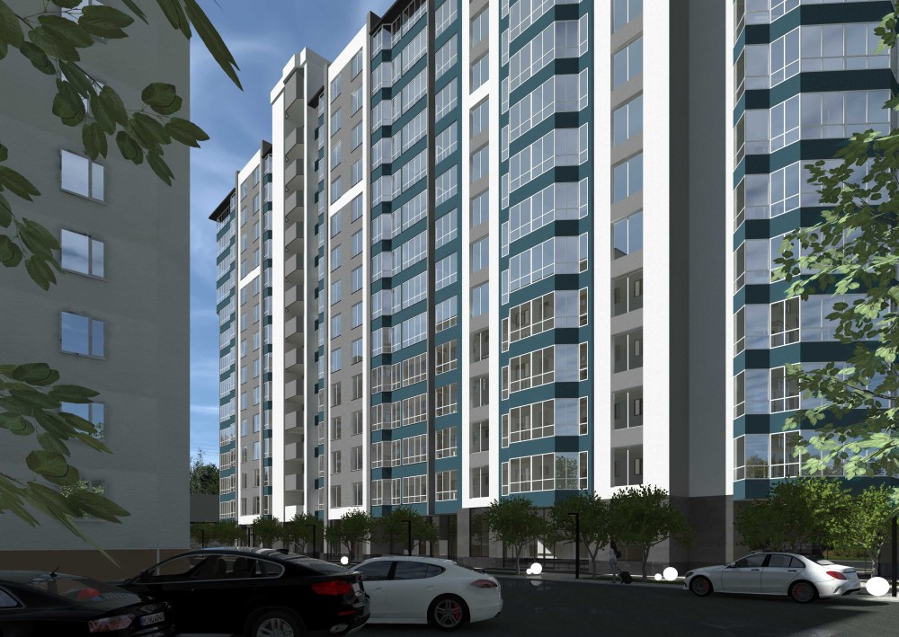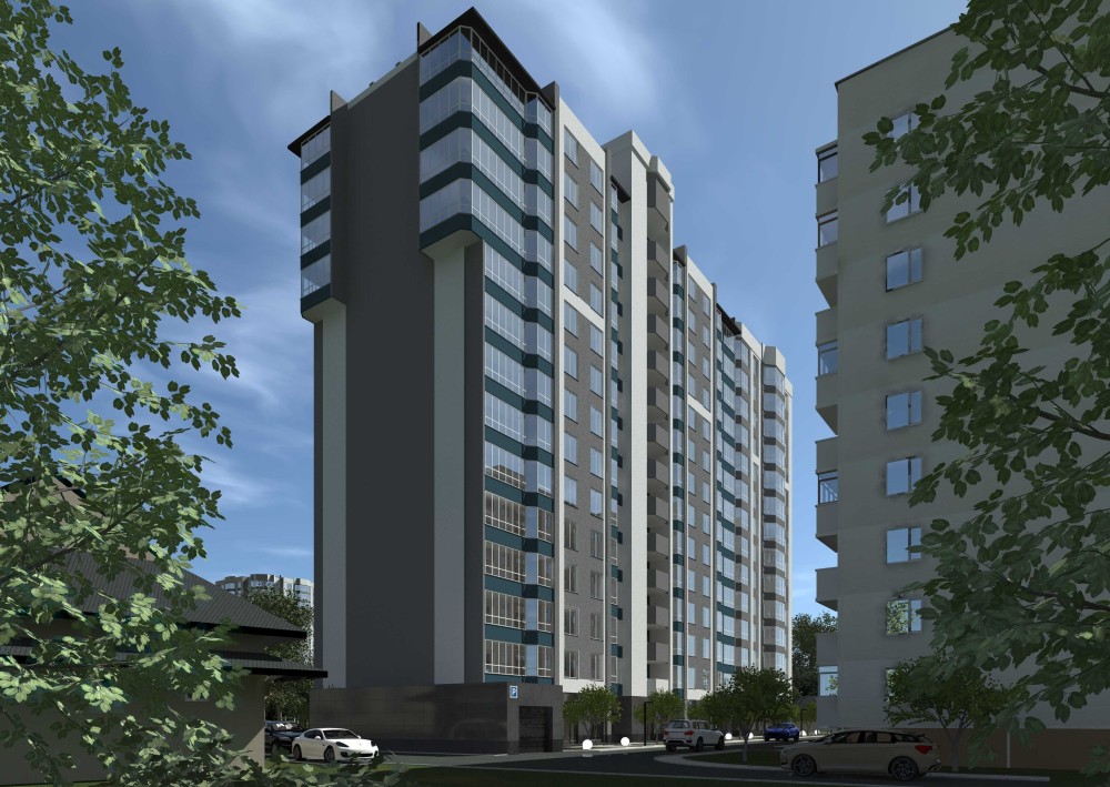 Будинок 14-ти поверховий, каркасно-монолітний. Зовнішні стіни з газоблоків товщиною 300 мм із утепленням мінераловатними плитами, оздоблені декоративною штукатуркою. Вікна та лоджії засклені.