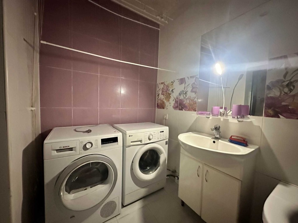Санвузол обладнано ванною, пралкою, сушкою для білизни.