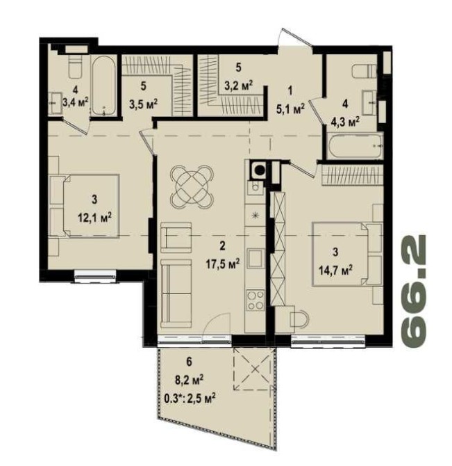 • Общая площадь 66.2 м2