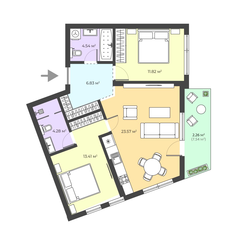 • Общая площадь 66.8 м2