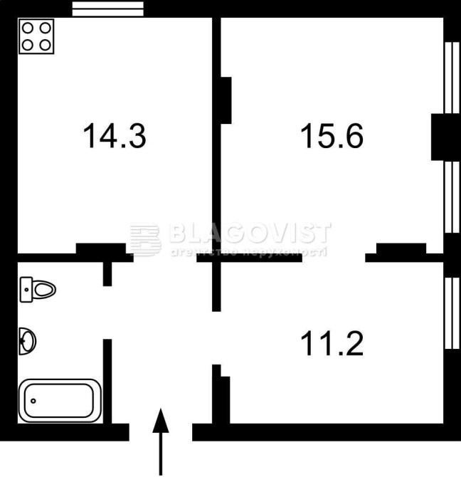 • Площадь кухни 14 м2