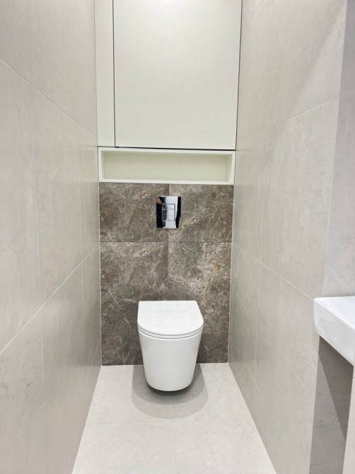 У вбиральні розмістили інсталяцію, невеликий рукомийник та бойлер на 100л [ gorenje, сухий тен]
