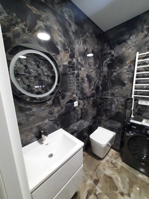 Виконано дійсно дорогий та якісний ремонт: марморін, китайський шовк, добротний водостійкий німецький ламінат, надійні вхідні та міжкімнатні двері, крута фурнітура HEFEL, кухонні меблі із МДФ, раковина із штучного каменя. Встановлено новий кондиціонер, інсталяція санвузла, вмонтована варочна поверхня, духова шафа, два дивани, двоспальне ліжко, абсолютно усе нове. Вмонтована кухня укомплектована гарнітуром та побутовою технікою, брендова сантехніка. Меблі та техніка - все залишається! Після завершення ремонту ніхто не проживав !