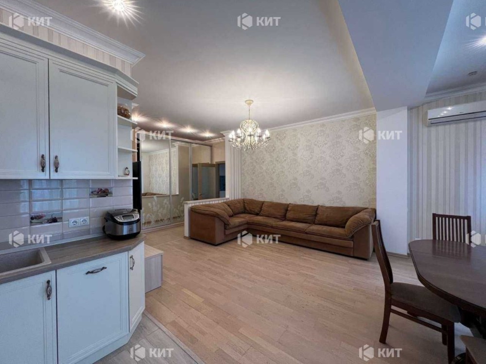 Квартира розташована на 8 поверсі 9-поверхового будинку. Загальна площа – 75м2, житлова площа – 22м2, кухня-студія – 40м2.