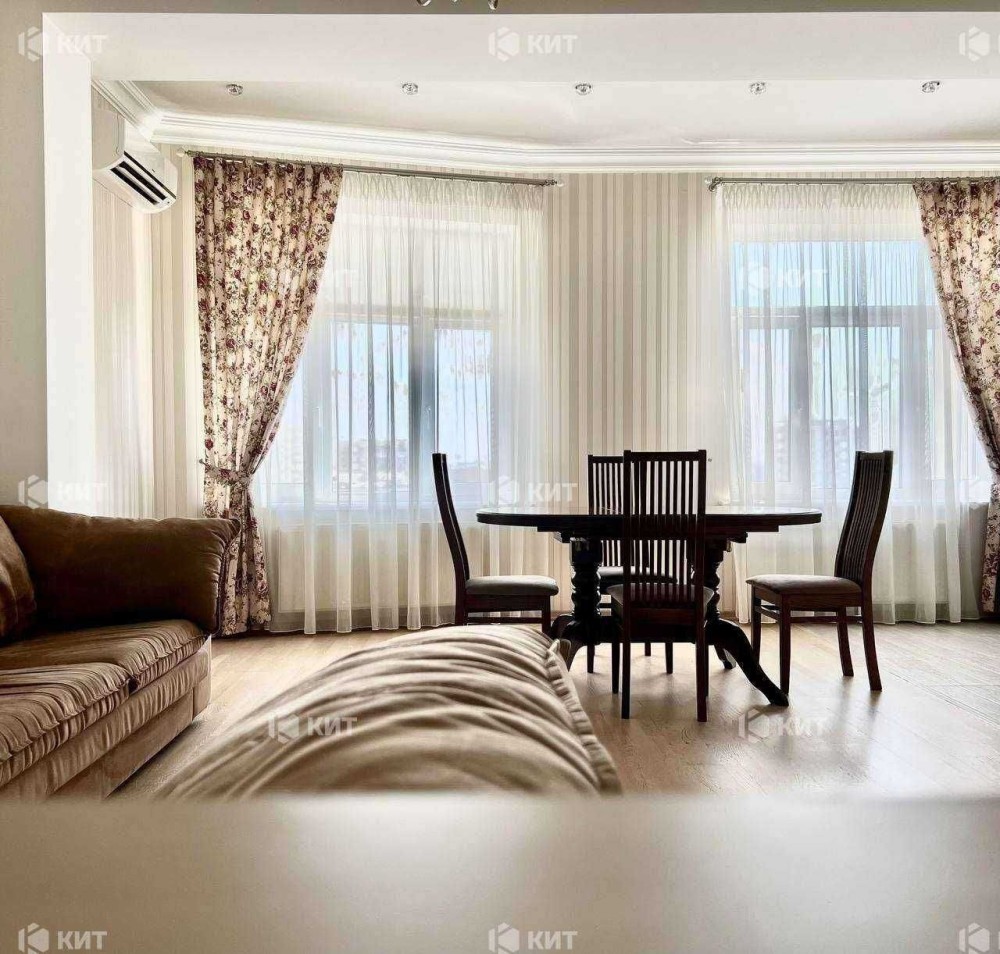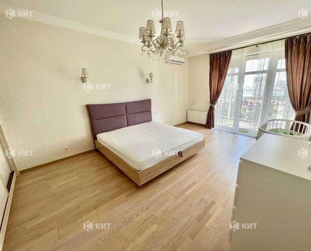 У квартирі виконано дизайнерський ремонт із дорогих матеріалів. Панорамний вид на центр міста.