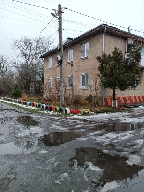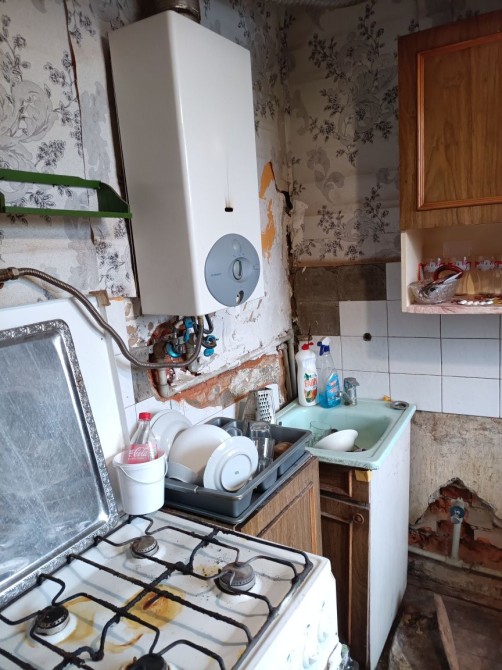 Квартира розташована на другому поверсі двохповерхового будинку, не кутова, дах не протікає. Газ, каналізації, електрика, вода - власна свердловина, з якої йде водопостачання тільки у цю квартиру.