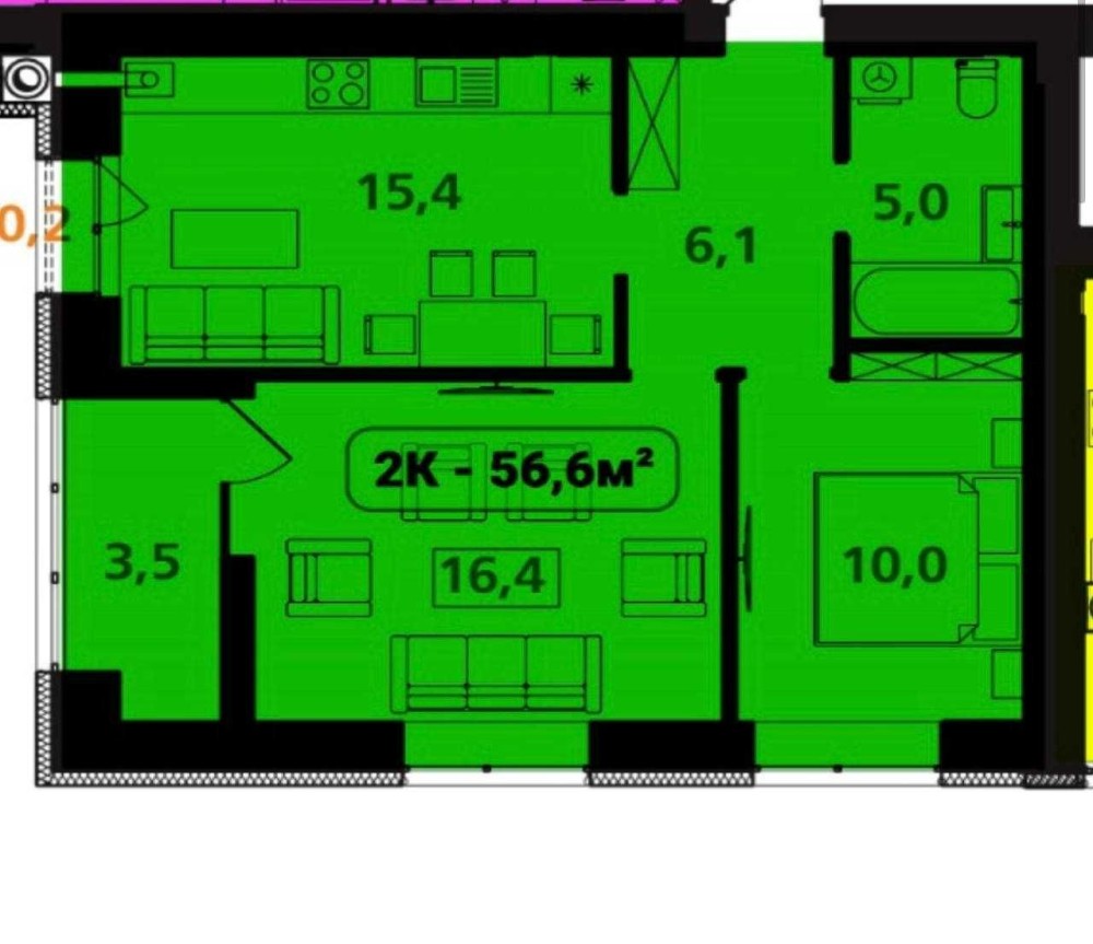 • Общая площадь 57 м2