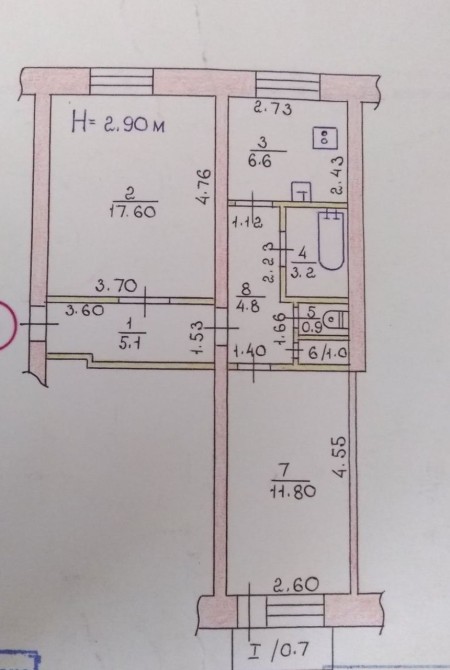 • Площадь кухни 7 м2