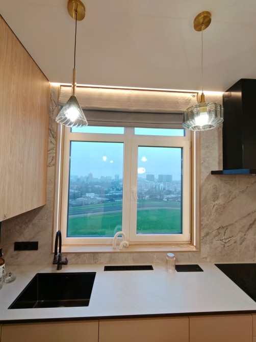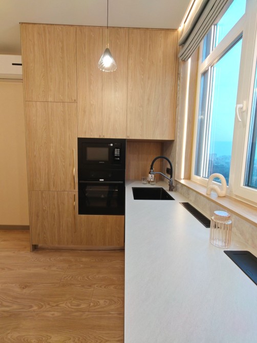 В кухне есть вся необходимая встроенная техника, фильтр для воды обратного осмоса, столешница из hpl, нижние фасады мдф soft touch.