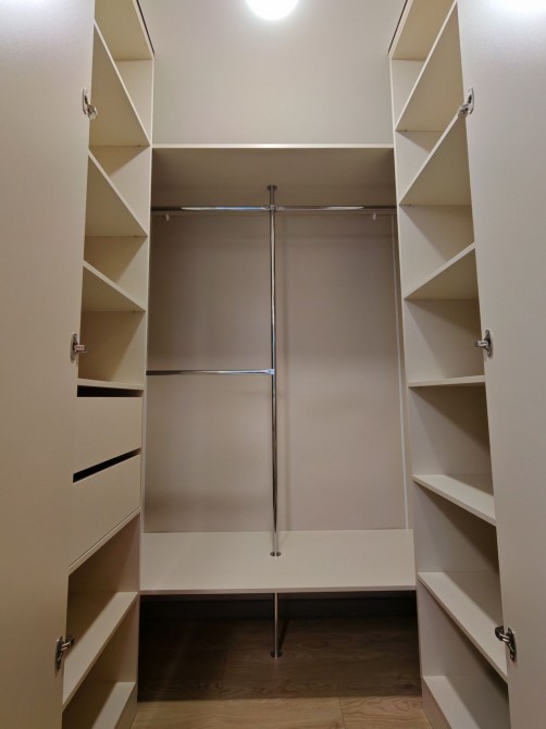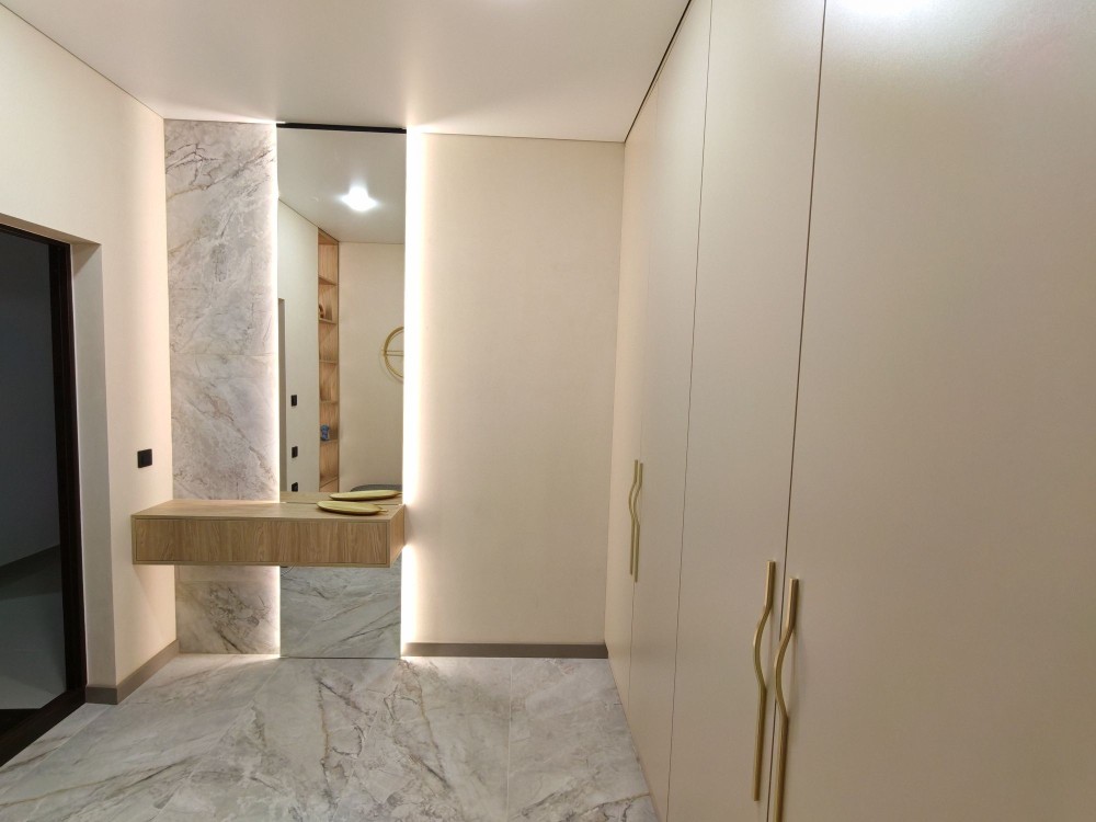 Кухня-студия, основная спальня с выходом на террасу и со своей гардеробной, вторая спальня подходит как под детскую так и под кабинет. Санузел с ванной, теплым пол, стирально-сушильной машиной и бойлером. Просторная прихожая с теплым полом.
