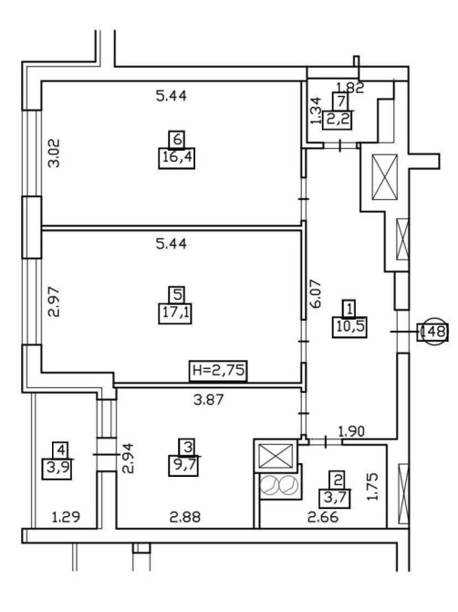 Висота стелі: 2,75 м